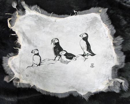 "Puffins" on Rabbit Skin Drawing #1 (approx. 14 in. long) Price Call for price