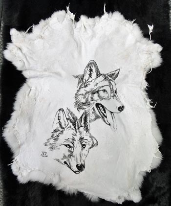 "Wolves" on Rabbit Skin Drawing #5 (approx. 16 in. long) Call for price